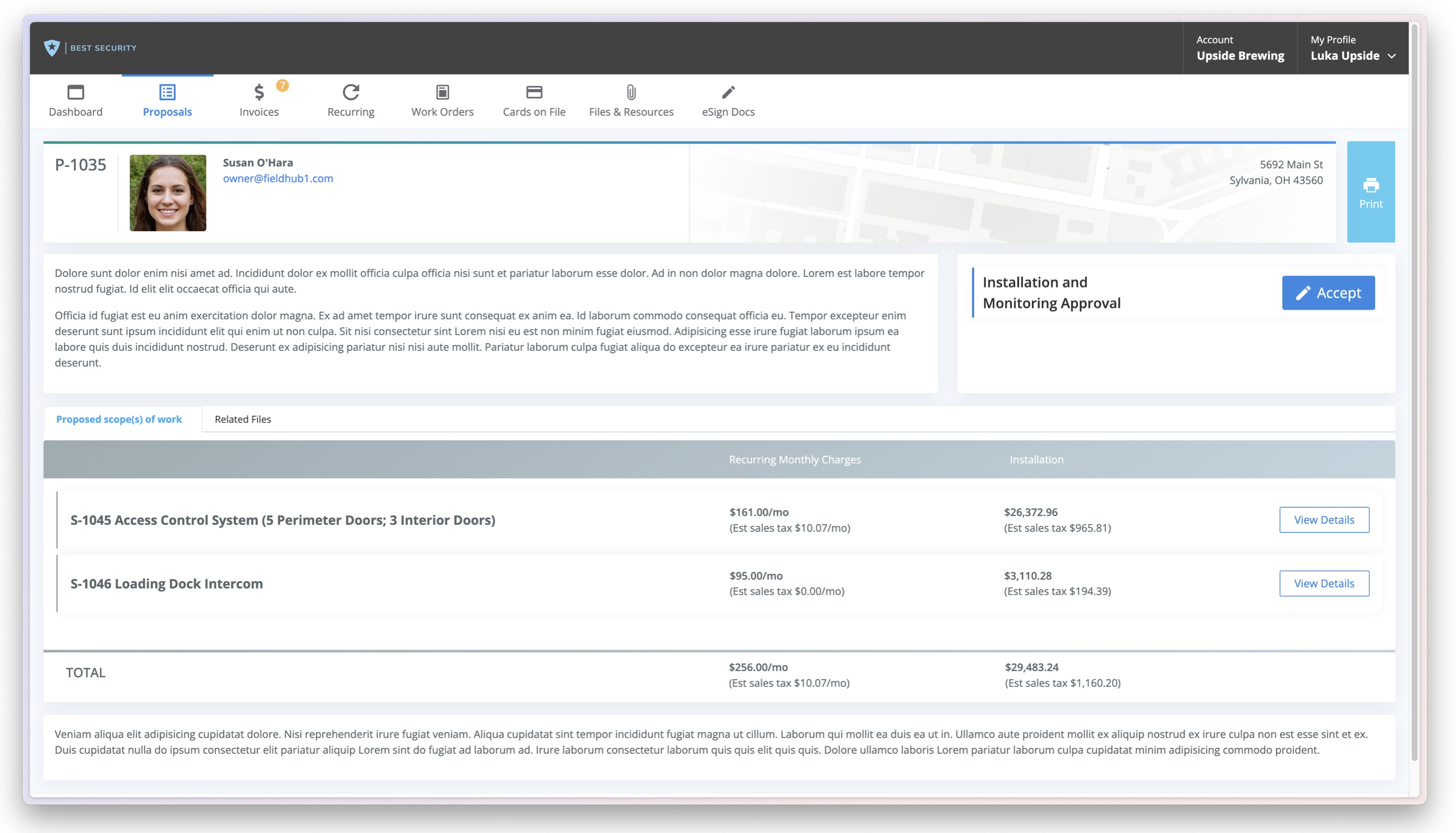 nvite your customers to view proposals directly within the customer portal, providing them with a secure and professional environment to review project details. Your sales team will be notified when a proposal is accessed, allowing for timely follow-ups and improved communication.