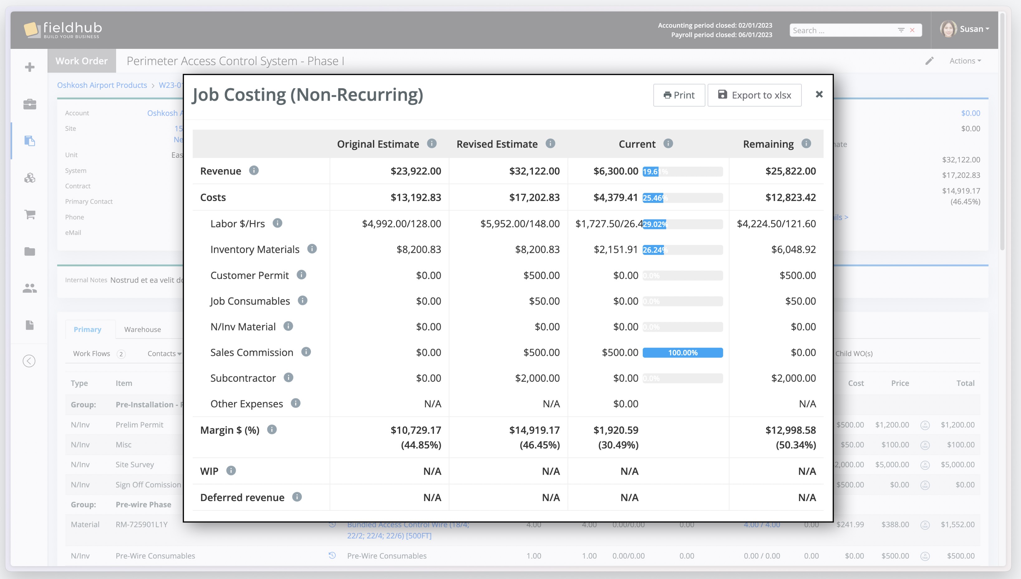 FieldHub’s integrated system combines all aspects of a job, including financial data, sales, and project information, to provide accurate job costing and revenue recognition. The work order job costing report, based on the integrated general ledger, reflects installed materials, project expenses, and manual journal entries, while the mobile app allows team members to track time, which is automatically reflected in job costing. With FieldHub, you can trust that your job costing is precise, empowering you to make informed decisions and ensure project profitability.